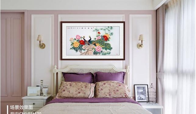 作为卧室里的装饰画,当然需要体现“卧”的情绪与美感的统一。通过装饰画的色彩、造型、形象以及艺术处理等,立体地显现出舒畅、轻松、亲切的意境。卧室配画要凸出温馨、浪漫的氛围。所以说,抛开一切世俗的烦恼,招财纳福,促进和谐,是家居挂画中不可缺少的花鸟挂画类型。