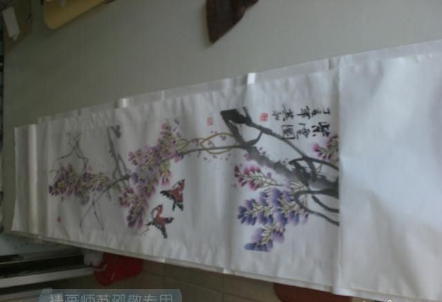复背前的画壳洒水,是为重要,画件经镶嵌,需要在背面贴上两层宣纸的背纸,如用湿复(本人自称是坐复),裱件是要洒上少许清水,水的多少,决定了后续的操作是否顺利,以下的图片所显示的正是水的----量。