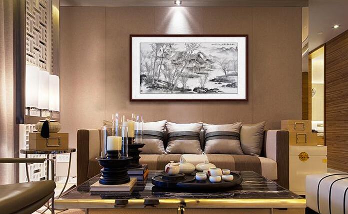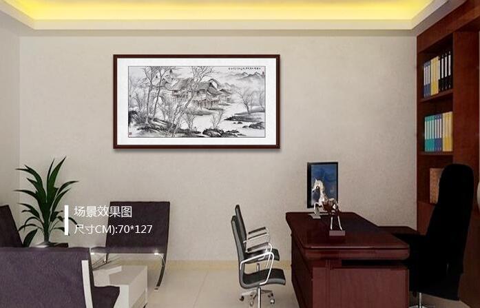 泼彩山水的意韵,吸收了西方绘画的色彩表现力之长,用笔沉稳而有灵气,讲究渴笔湿墨,画线老辣、古拙,墨色变化自如。他运用颜色稳重古韵,常常以工整笔触描绘山水,利用宣纸的特殊性,水、墨、色相互融合与撞击,形成一个意料之内和意料之外的美,独到的艺术表现形式描绘山岗上郁郁葱葱的树丛,茂美浑厚的山林,层层叠叠,恰到好处,山水画中设立的一个人物更是让画面显得灵动有意境。艺术是有意味形式,是美的,这一点吴大恺老师作到了。