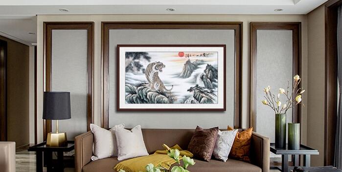 家中挂老虎图是一种吉祥好运的象征。上山虎一般都是昂首挺胸的姿势,配着松树枝、雪景,宁静致远的感觉给人一种步步登高之感,在家中挂幅上山虎寓意着事业上步步高升,事事如意,招财纳福。