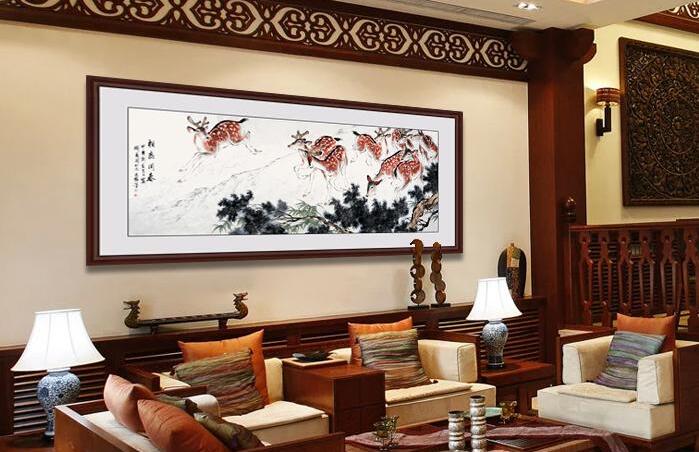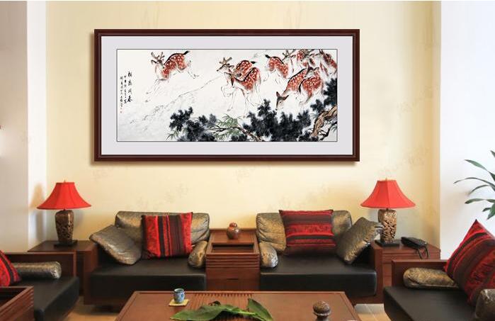 鹿本身还是中国古人想象的瑞兽麒麟的原型。在1935年中华书局出版的《中华大字典》中,麒麟的插图就是一头长颈鹿。在首饰造型上,有用整个鹿形的,还有用梅花鹿的鹿角做象征的。鹿与蝙蝠等其他吉祥寓意的象征形象和在一起,还能组成“福禄”等更美好的寓意。此作品作为家居客厅挂画的佳作,另外给老人祝寿或者送长辈有着美好的寓意,作为收藏也有很大的潜力。