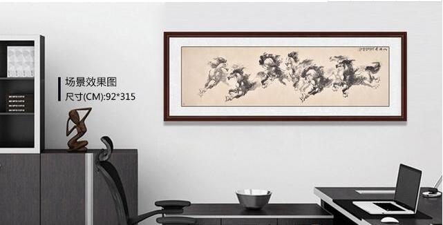 有诗曰:莫道云鹏笔墨狂,重描淡写马无疆。毫端久蘸弥河水,精气初融塞上霜。佳作可填韩幹短,丹青更取画师长。扬鞭驰骋行千里,踏过甜城蹄后香。它那刚劲矫健,剽悍的骏马,给人以自由和力量的象征,鼓舞人们积极向上。马又有马到成功之意,在家里书房挂幅骏马图是非常吉祥的!