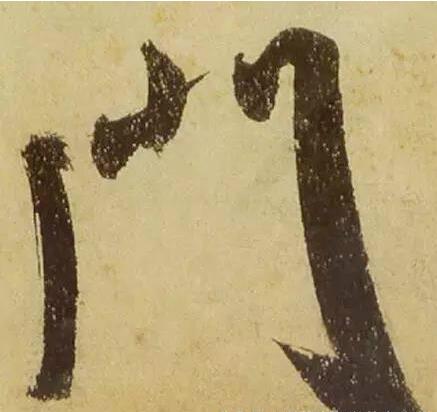 米芾的捺笔变化也很多,下笔的着重点有时在起笔,有时在落笔,有时却在一笔的中间,对于较长的横画还有一波三折。“反捺”是米芾运笔一大经典,如《值雨帖》的“数”: